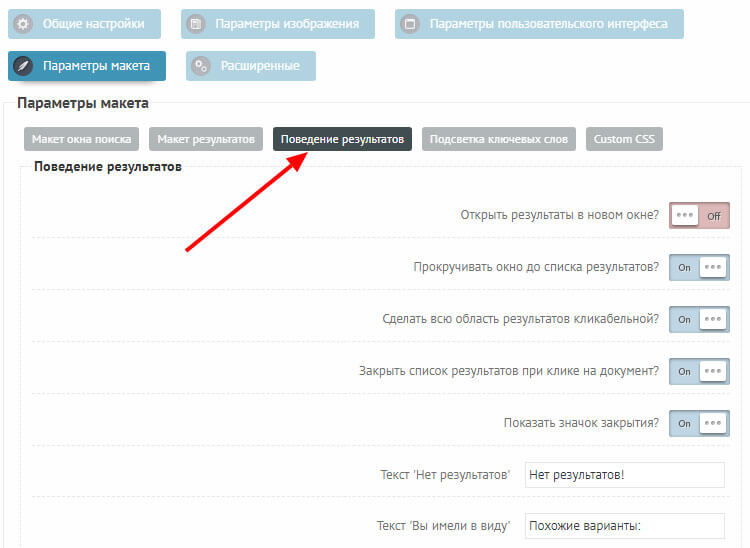 Второй параметр я выключил, так как если поиск ничего не найдёт, то он будет показывать популярные запросы и тянуть их будет из Google. И далеко не факт, что у меня на сайте есть нужная по ним информация. Я не стал вводить в заблуждение читателей и отключил эту функцию.