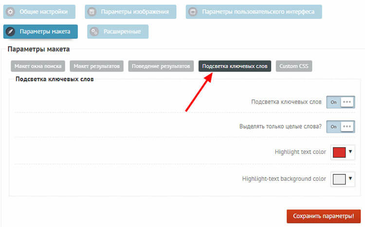 Подраздел Подсветка ключевых слов