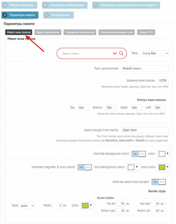 Это вторая причина, ради которой я выбрал этот плагин. В этом разделе вы сможете настроить форму умного поиска так, как вам угодно. Можно воспользоваться уже готовыми дизайнами, либо изменить стили вручную. В готовых я не нашёл нужного мне цвета, поэтому стилизовал сам под дизайн своего блога.